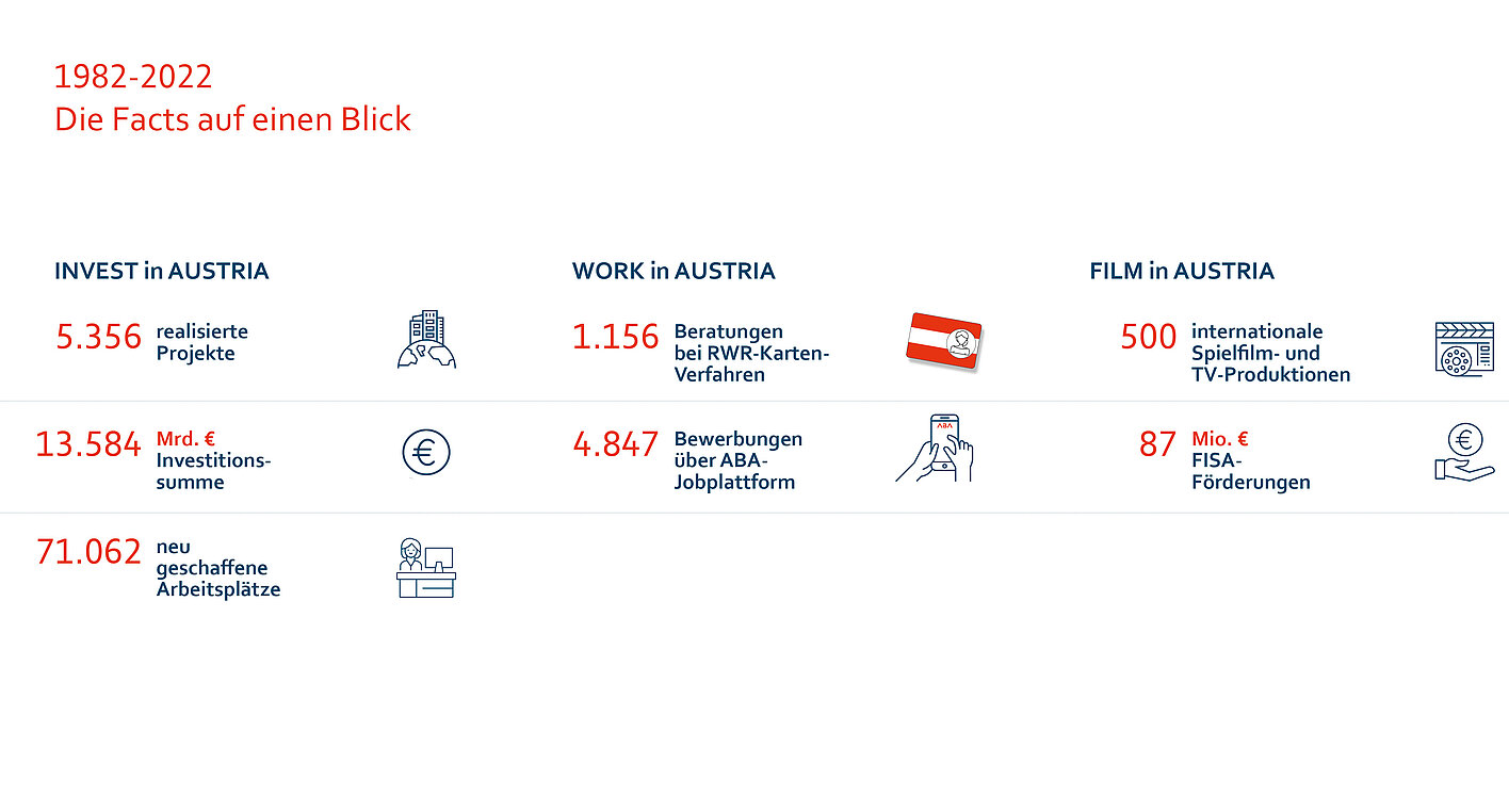 Seit 40 Jahren berät die Austrian Business Agency (ABA) internationale Unternehmen bei der Ansiedlung in Österreich und unterstützt bei der Suche nach hochqualifiziertem und internationalem Fachpersonal. Sie ist damit eine der erfahrensten und meistausgezeichneten FDI Agencies der Welt. Schon mehr als 5000 internationale Unternehmen sind mit Unterstützung der ABA nach Österreich gekommen. Über die Jahre und Jahrzehnte sind viele von ihnen gewachsen und haben weiter in Österreich investiert.